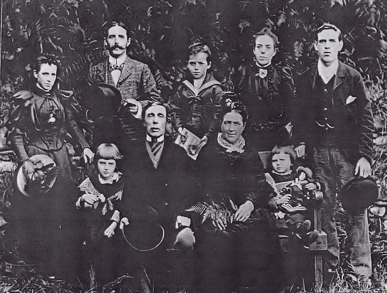 and family. The little girl front left is grand daughter Gladys Walder, born 1886, daughter of Mary Jane. |