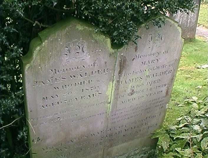 | In memory of JAMES WALDER who died May 30 1870 aged aged 73 years. "Precious in the sight of the Lord is the death of his Saints" Psalm CXVIV? ver X In memory of MARY the beloved wife of JAMES WALDER who died October 14 1878 aged 70 years. "Blessed are they and only they who in the Lord the Saviour die Their bodies wait redemptions day and sleep in peace where they lie" Also of JAMES WALDER the beloved son of WARDEN and SARAH WALDER Born April 23 1872 Died March 14 1878 " Suffer little children to come unto Me" |