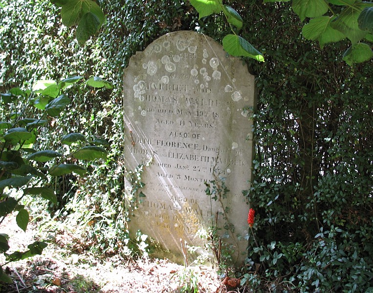 | Sacred to the Memory of HARRIET WALDER who died May 19th 1870 aged 41 years Also of EDITH FLORENCE daughter of THOMAS and ELIZABETH WALDER who died Jan 27th 1874 aged 3 months the righteous shall be in everlasting remembrance Also of THOMAS WALDER who died Oct 30th 1908 aged 79 years. |